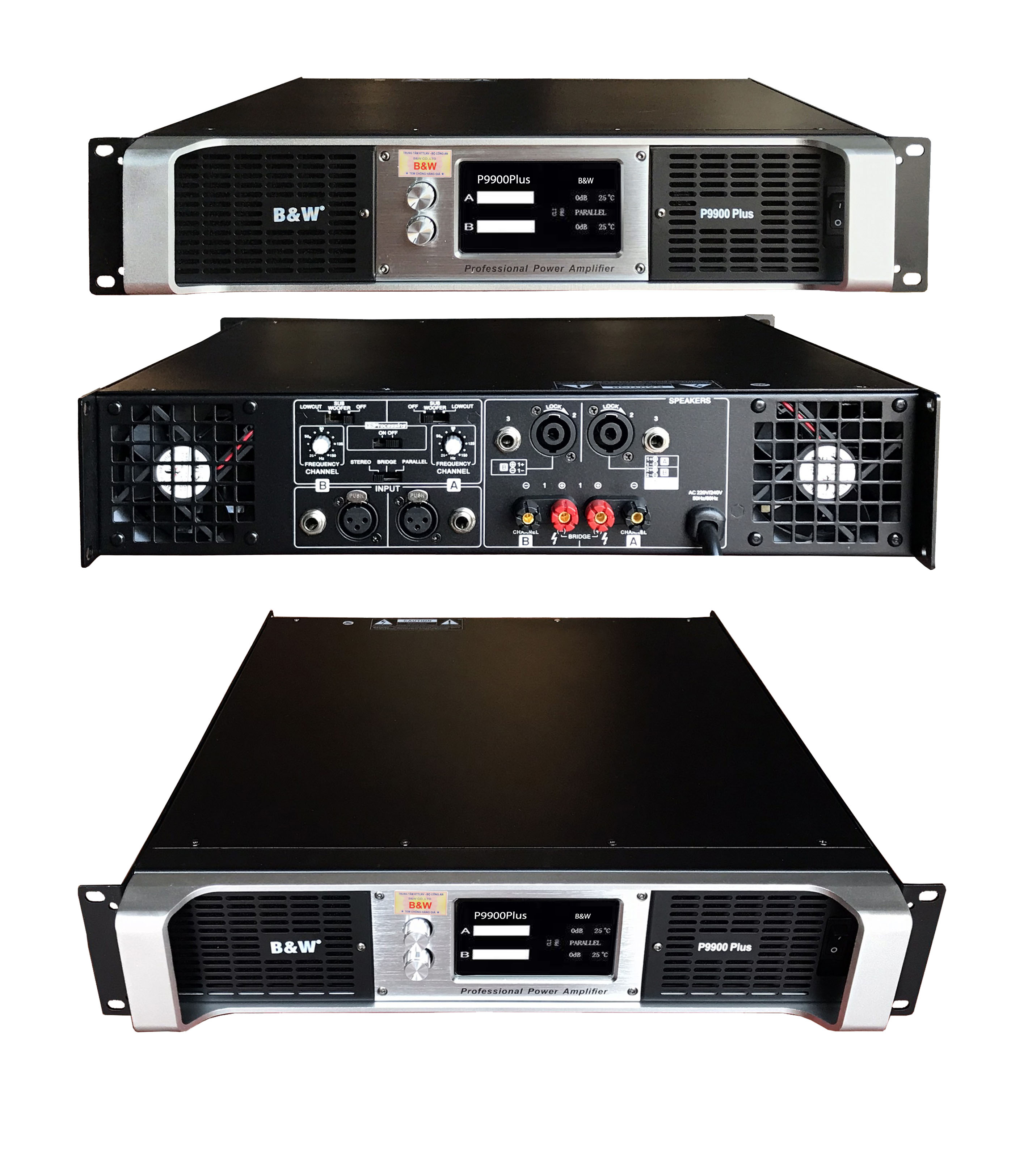 Cục đẩy sử dụng mạch class H có full chức năng phía sau, mặt trước có màn hình LCD thể hiện thông số, nhiệt độ, chế độ, mức công suất đang dùng, mã sản phẩm và nhãn hiệu.