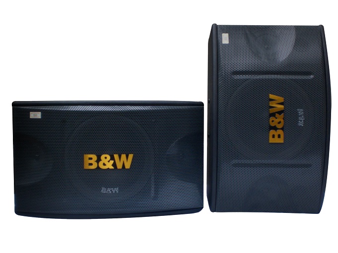 Bao phủ toàn bộ mặt trước là tấm ê – căng bằng thép, nổi bật trên đó là logo B&W màu vàng ánh kim giúp khách hàng dễ dàng nhận diện thương hiệu với các dòng loa karaoke khác trên thị trường.