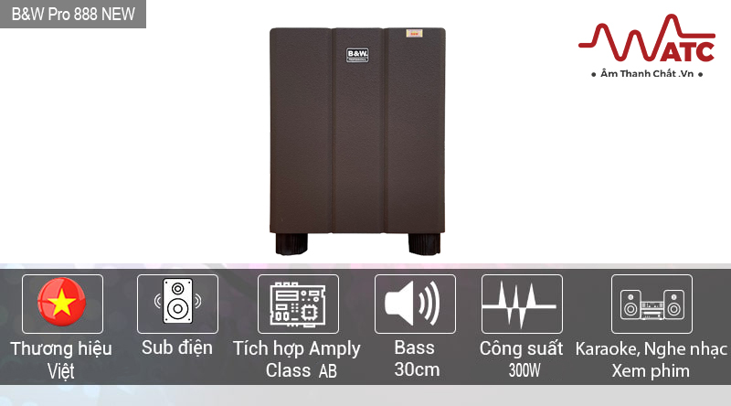 Subwoofer Pro 888 New được thương hiệu B&W cho ra mắt thị trường âm thanh với hai phiên bản nâu và đen nhám. Với thiết kế hiện đại, khả năng tái tạo âm trầm chắc nịch cùng hiệu ứng âm thanh 360° hứa hẹn dòng loa Subwoofer này sẽ mang đến cho người dùng những trải nghiệm tuyệt vời đến bất ngờ.